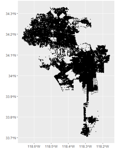 Because our data came from a variety of sources, we applied a range of mutations and transformations in order to join our data into a single data frame. Census data had to be renamed and filtered down to only include South Los Angeles census tracts. Additional mutations were made thereafter to create a population density, community mobility, racial heterogeneity, and economic class variables. After the demographic mutations, crime and property type data points had to be joined to the South Los Angeles shapefile. To do so, we transformed the shapefile into a spatial feature and aggregated census tract sums for property and violent crime reports and property types. Following the spatial join, we used multivariate imputation via chained equations to predict and replace missing values in the mental and physical health variables.