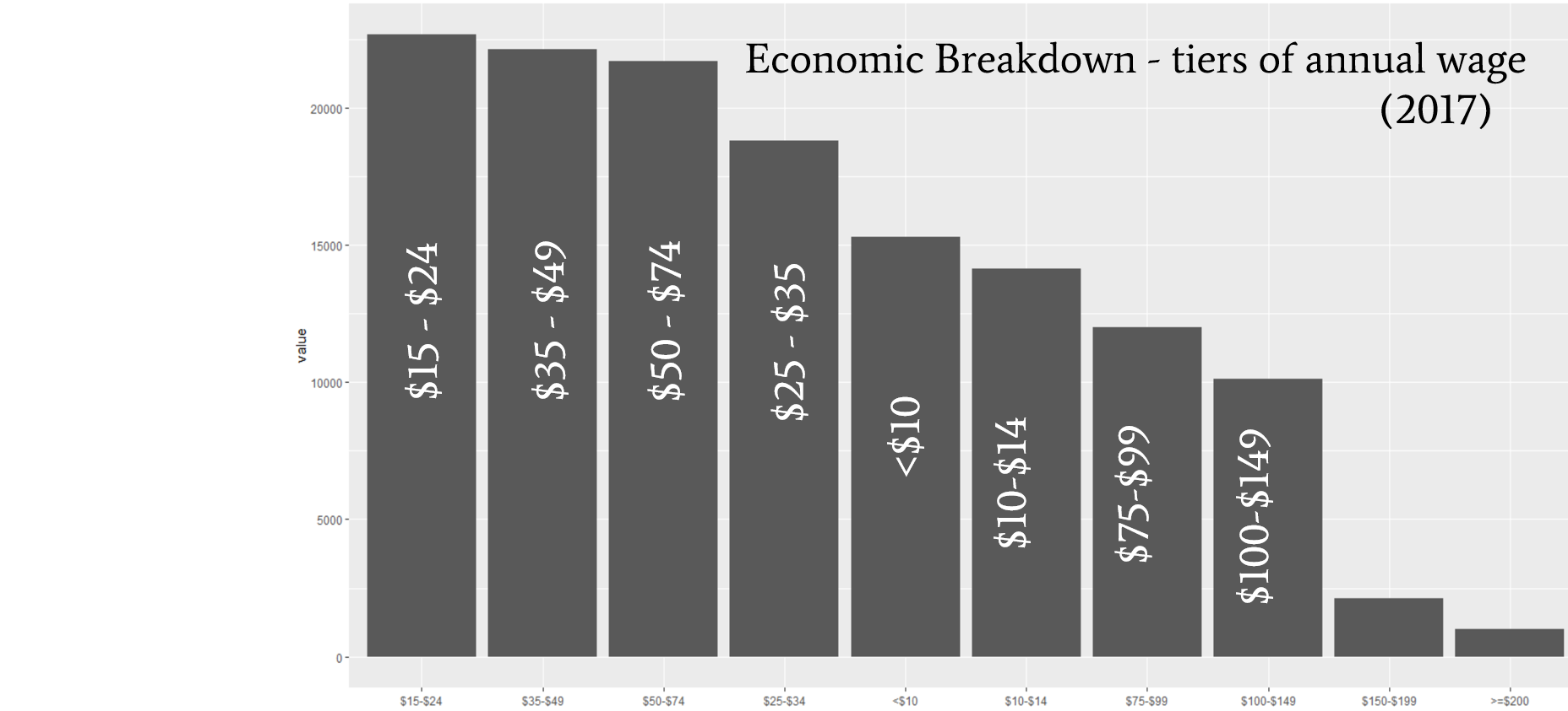 Economically, South LA is for the most part middle class earning between $25,000 to $75,000, and lower class <$10,000 to $24,999.