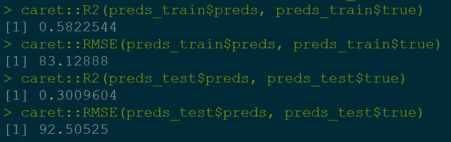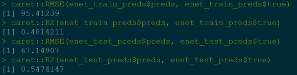 Some of the variables that were used were population density and education. With the results for RMSE and R2 for both the training set and test set, we can say that our model works better with test set, which we are happy to see. One interesting thing to point out is the population density has a big negative intercept which indicates a negative relationship. But with further thinking, we suspect this to either be a scaling issue on our hand or the student population in USC skewed the results.