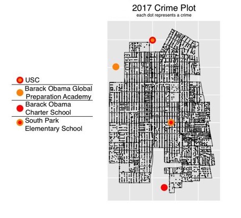 The Tobacco Related Disease Research Program (TRDRP) funded Chapman University’s Crean College faculty Dr. Jason Douglas to continue a study in South Los Angeles pertaining to geography of crime surrounding nuisance properties in large urban low income communities of color (Subica et al., 2016). This paper identified key aspects of the problem space including: The community identification of nuisance properties to be tobacco shops, liquor stores, and marijuana dispensaries in South Los Angeles, the prevalence of nuisance properties and its ecological effects on crime and the community, and a theoretical framework outlining social disorganization to be a signal for a compromised system of social controls thus increasing risk of crime. The paper also conducts three statistical techniques to analyze crime, property types, and demographic data. A Kruskal Wallis H test comparing crime count means within buffers of nuisance properties and convenience stores, an ordinary least squares regression model predicting crime count within a census tract, and a geographic weighted regression model predicting crime count as well. Our study expands on the ordinary least squares regression model and includes an elastic net regression model and a random forest model and is updated for the year 2017 instead of 2014. Aside from the TRDRP stakeholders, beneficiaries from this study include: policy makers governing legislations, control boards, and zoning requirements, the community to push awareness of results, public health specialists to validate and expand on the study, and police forces to re-examine and focus efforts appropriately.