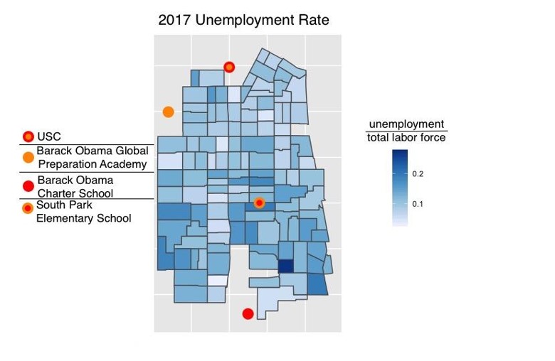 Alternatively, the north seems to have to have a lower unemployment rate than the rest of South LA, again potentially due to the vicinity of the USC and potentially better economic infrastructure and job opportunity.